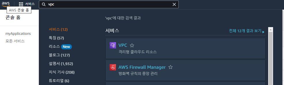 먼저 웹콘솔에 로그인하여 검색창에 vpc로 검색을 해서 들어가자