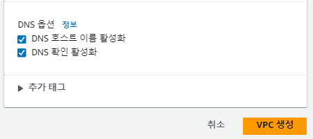 'DNS 호스트 이름 활성화'는 퍼블릭 IP에 해당하는 퍼블릭 DNS를 자동으로 생성해주는 기능이다.