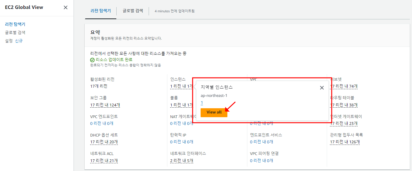 1개 리전에 인스턴스가 1개 있다고 나오네요.