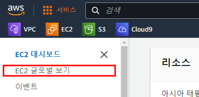 1. AWS 웹콘솔에 접속하여 EC2 서비스 > EC2 글로벌 보기 클릭