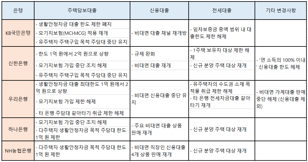 - 각 은행의 대출 정책 변화를 지속적으로 모니터링