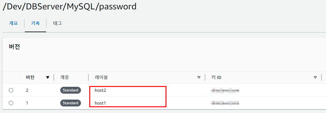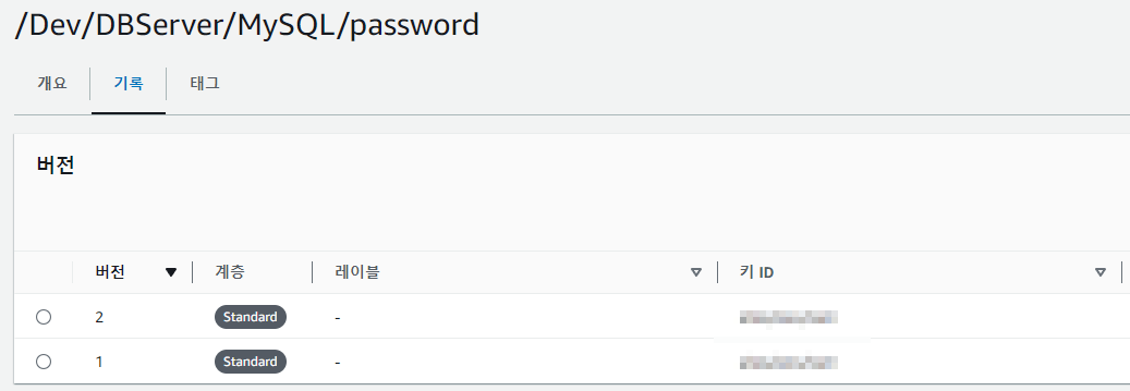 Parameter Store에 저장된 값이 변경되면 그 이력이 버전으로 관리가 되며, 값을 불러올때도 특정 버전의 값을 불러오는 것도 가능하다.
