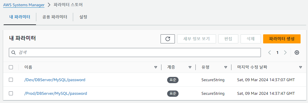 Parameter Store의 계층구조는 "/"로 표현이 되며, 계층구조는 파라미터를 조회할 때 편리하게 해준다.