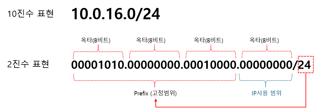CIDR을 해석하려면, '옥타' 와 'prefix'를 이해해야 합니다.