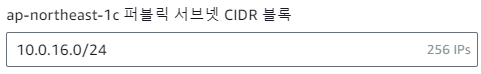 Subnet의 기본 CIDR은 prefix가 /20 으로 되어있으나, 편의상 /24로 바꿔보았습니다.