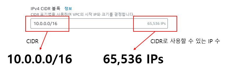위에서 본 CIDR 10.0.0.0/16이 어떤 의미이고, 왜 사용가능한 IP의 수가 65,536개인지 알아보겠습니다.