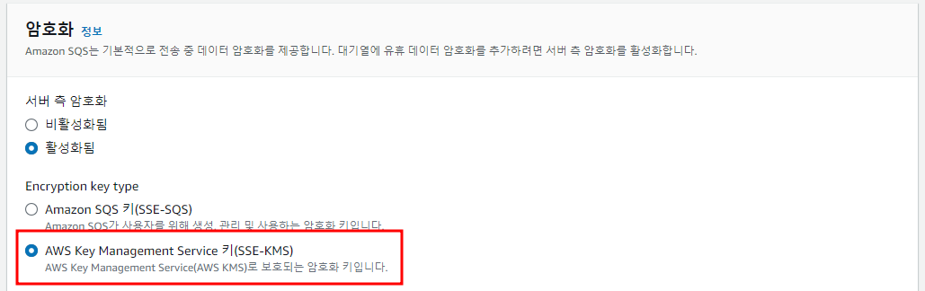 메시지 암호화 : SQS로 전송 중인 데이터를 KMS를 이용하여 암호화