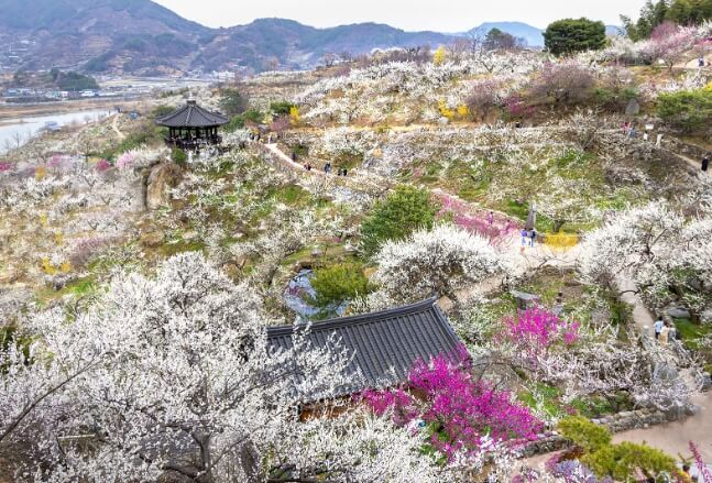 - 약 15만 평의 부지에 4만여 그루의 매화나무 조성