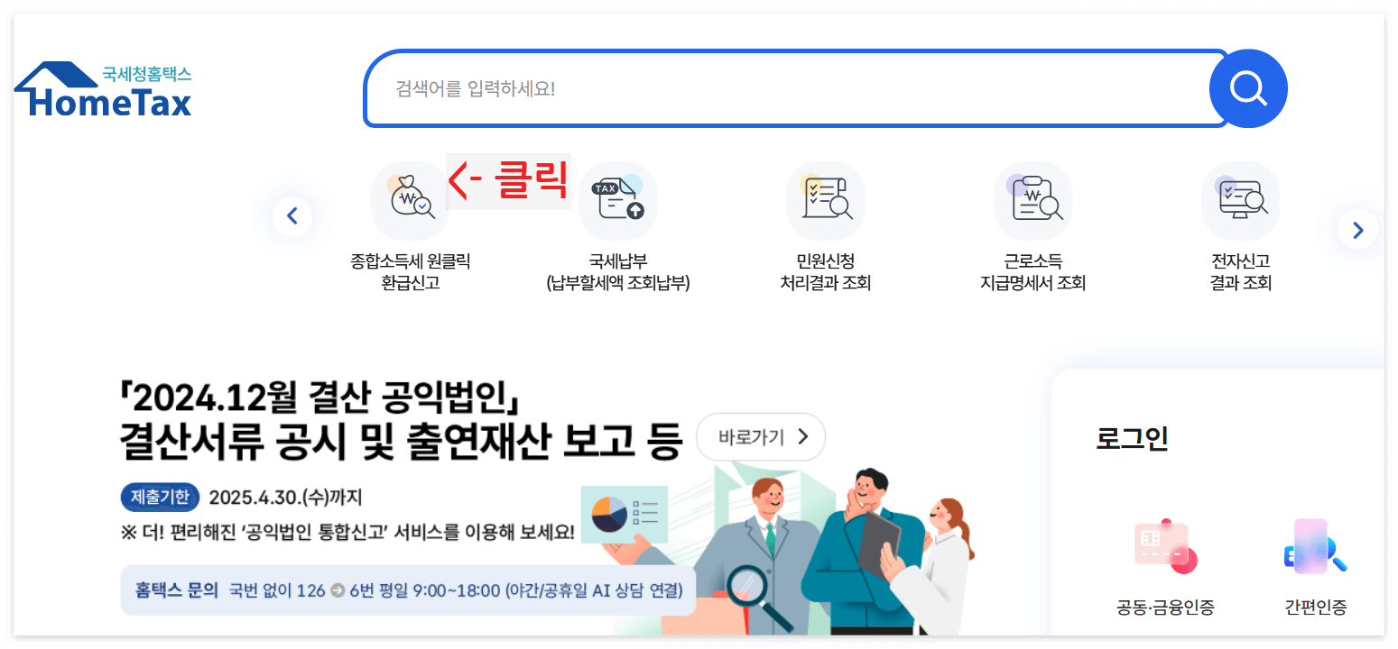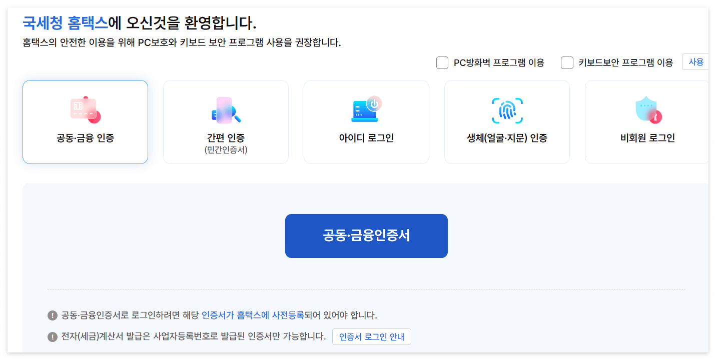 - 홈택스 접속: PC 또는 모바일에서 홈택스 웹사이트에 접속합니다.