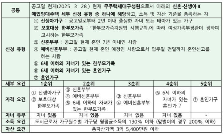 2025년 상반기 신혼·신생아 매입임대주택 신청 자격