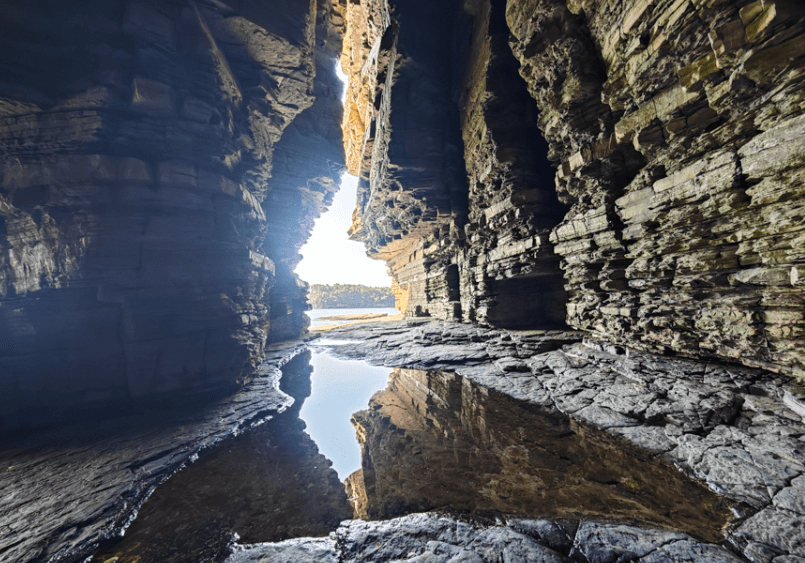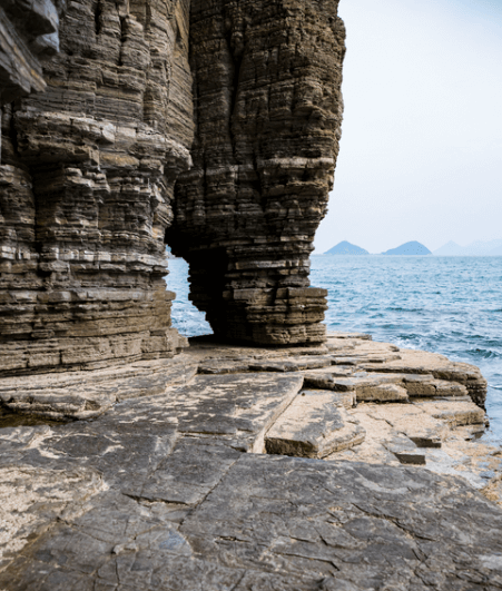 - 해식동굴은 바닷물의 침식 작용으로 만들어진 미로처럼 복잡한 구조로, 썰물 때 동굴 내부까지 걸어 들어가 다양한 암석 구조와 퇴적층을 가까이에서 관찰할 수 있습니다.