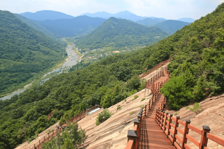 - 용궐산 하늘길은 2020년, 산 중턱의 거대한 바위 절벽(용여암)에 약 1,010~1,096m에 달하는 데크길(잔도)을 설치해 만들어진 산악 관광 명소입니다. 산세가 마치 용이 승천하는 듯한 형상에서 이름이 유래되었으며, 데크길을 따라 걷다 보면 섬진강과 벌동산, 기암괴석, 그리고 용궐산의 웅장한 능선을 한눈에 감상할 수 있습니다.