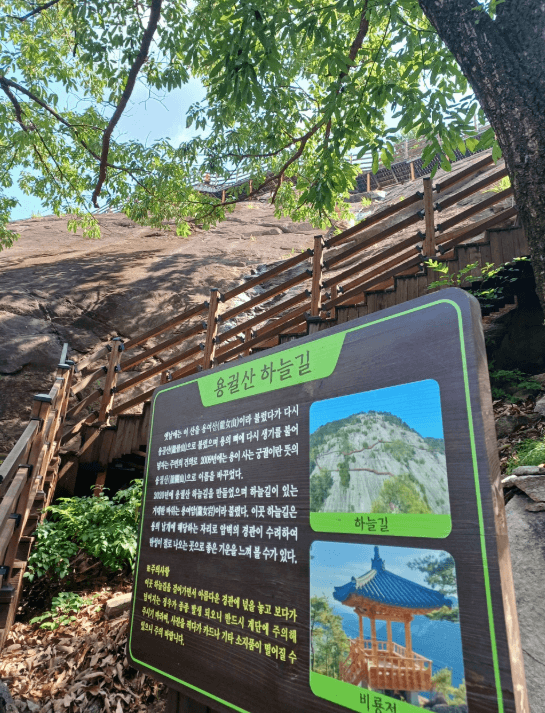 - 주차장~매표소~돌계단(600~700m)~하늘길(1,010~1,096m)~비룡정~하산 코스로, 왕복 약 3.2km, 2시간 내외 소요됩니다.
