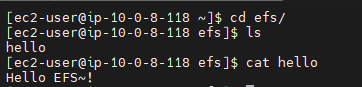 그리고, 다른 서버의 efs 디렉토리에서 해당 파일을 확인해봅니다.  잘 보이네요~!!