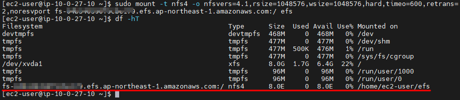 다음 포스팅에서는 EC2를 재 기동해도 EFS를 자동으로 마운트 하도록 설정하는 방법을 알아보겠습니다.